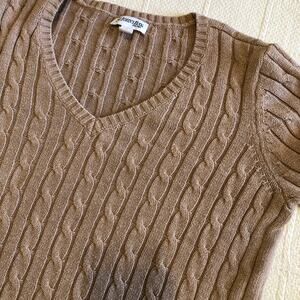 St Johnβs Bay Taupe Cable Knit V-Neck Sweater Quiet Luxury Classic Preppy L