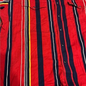 Step into classic Western style with this vintage Wrangler men’s western shirt in size XL. This bold striped Brushpopper design is a nod to true cowboy heritage — perfect for rodeos, ranch wear, or everyday vintage street style.