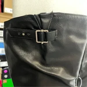 Sleek black over the knee boots with buckle accents. Wide calf design for comfort. Perfect for any occasion.