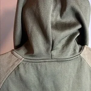 Stylish olive and khaki hoodie. Ideal for casual outings.