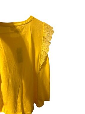 Chic yellow tank with delicate ruffle sleeves. Ideal for casual wear.