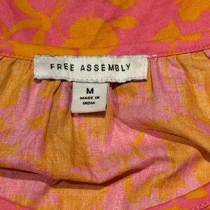 Free Assembly shirred crewneck with keyhole and button closure short sleeves with elasticized cuffs side seam pockets 100% cotton