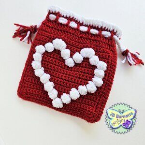Handmade with love, this sweet bag is a crochet pouch featuring a 3D Heart pattern on the front and back, as well as a mini heart pattern on the lining. The duel drawstrings are accented on the ends with jeweled tassels. This unique beauty is the perfect accessory for any outfit. Carry your phone and accessories. Spoil yourself with this lovely bag, or give it as a beautiful gift for a birthday or to a crochet lover this holiday season.