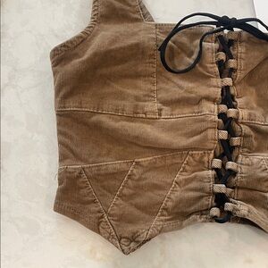 NWT Urban Outfitters Tan Lace-Up Corduroy Crop Tank Top Boho Festival
