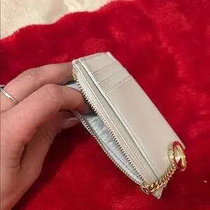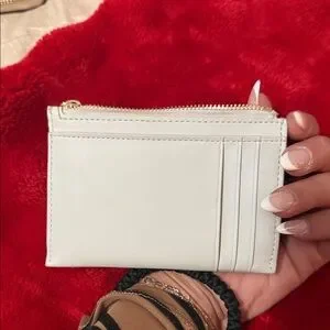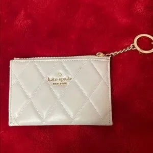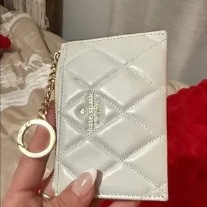 Elegant quilted card holder by Kate Spade. Features a chic white design with a gold logo accent.