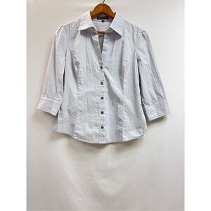 Express Design Studio Womens 3/4 Sleeve Collared Button up Shirt Blue Sz S