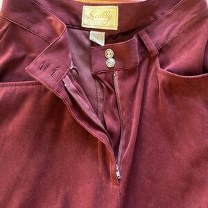 Pants are in excellent condition with no spots, stains, snags, holes or fade! Beautiful burgundy color. Size small but please check ll photos and measurements carefully for best description and let me know if you have any questions.