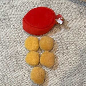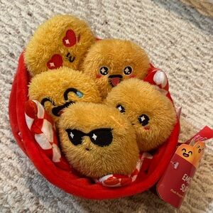 Cute plush set featuring emotional support nuggets and fries. Bright yellow and red colors. Perfect for comfort and fun.