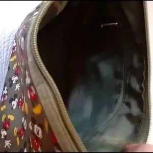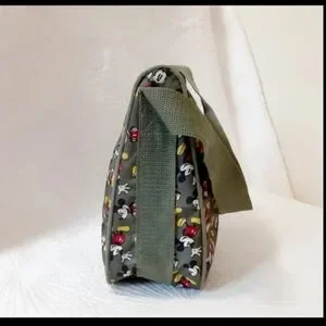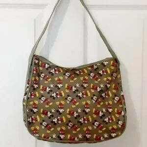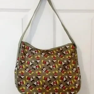 Made of Canvas & Polyester. Green & Brown with Micky Mouse design. A great bag for kids or adults. Unisex.