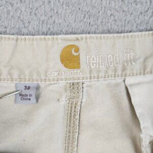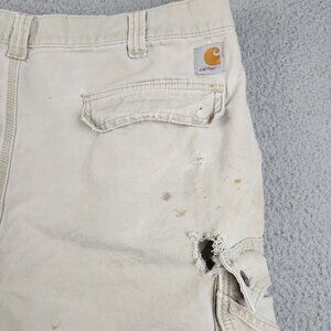 VTG CARHARTT Shorts Mens 38 Khaki Cargo Natural Distressed Y2K Thrashed Paint