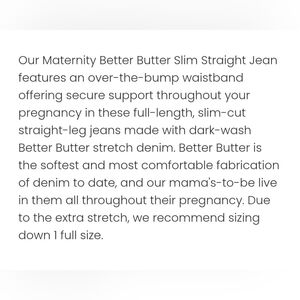 NWT! Better Than Butter Lanie Stretch Maternity Women's Slim Strait Jean Size 6