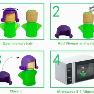 Make cleaning your microwave fun and easy with the Angry Mama Microwave Cleaner. Featuring a vibrant green body and purple hair, this tool uses steam to loosen grime and stains. Simply fill with vinegar and water, and let Angry Mama do the work!