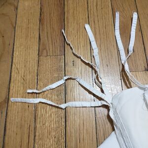 Also a repair at a button hole, a green line at one of the top corner, and a faint yellow stain at the top near the double pipping, see last 3 pictures
