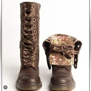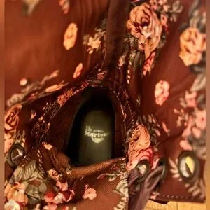 The very feminine cut of the 12-Eye Toe Cap Boot offers a versatility of look: worn up they are strikingly Dr. Martens; folded down they offer a more casual, laid-back yet bold style by exposing the floral linings. 12 Eyelet Lace-Up Boot.