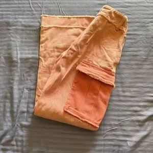 AKIRA Women’s Two-Tone Cargo Jeans Peach Coral Wide Leg High Waist XS NWT