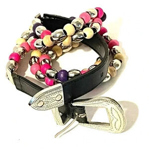 Womens Genuine Leather Wooden Beaded Belt Western Buckle Size Small/Medium