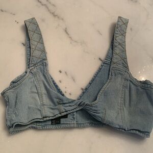 Retrofête Willis Denim Bralette Top – Light Wash, Tag says Size Large but much smaller. See measurements