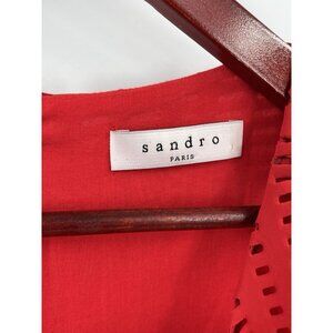 SANDRO Women's Red Laser Cut Flounce Hem Sleeveless Fit & Flare Dress Size 1 SM