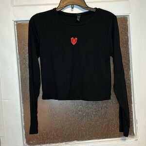 Wild Fable Women’s Long Sleeve Black Heart Cropped Ribbed T-shirt Size Large