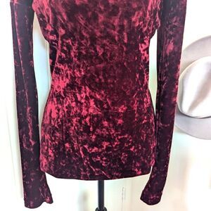 Description: Vintage 90s Betsey Johnson Red Burnout Velvet Whimsigoth Top sz MD/LG, made in the U.S.A., beautiful neckline with style that can also be worn off the shouders, shimmery velvet with some stretch to it, 90s, Y2k goodness, size tag missing so please see approximate measurements below