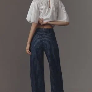 NWT Anthropologie Pilcro Kayden Railroad stripe barrel denim
