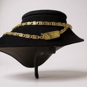 Valentino Vintage Gold Turquoise Pendant Necklace 36”