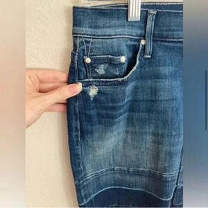 Mother Denim Undone Hem Mini Skirt in Dark Graffiti Size 26 Blue