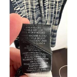 BCBG x Maxaria Dress Stretch Flowy Sleeve Pleated Shift Dress Blue Gold Medium