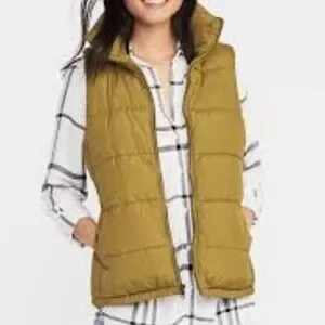 Old Navy quilted puffer vest in Jungle Grove color which is an olive gold, size M.