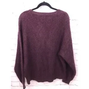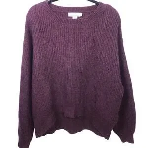 L.O.G.G. H&M Mohair Blend High Low Long Sleeve Ribbed Cropped Drop Shoulder Long Sleeve Burgundy Chunky Sweater Women's M