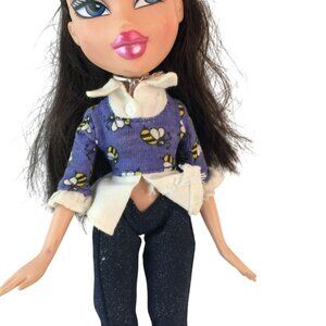 This vintage 2001 Bratz Jade doll features a stylish bumble bee shirt, pants, and boots. A collector's gem for fans of the iconic MGA Bratz series, this doll captures the bold fashion and vibrant personality that the Bratz are known for.