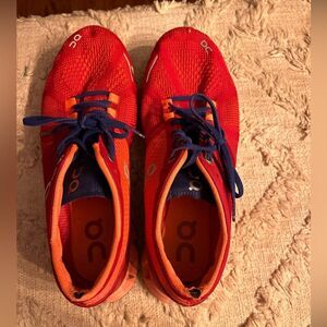 Vibrant red and orange sneakers. Lightweight and breathable. Perfect for active lifestyles. Good condition-minor wear