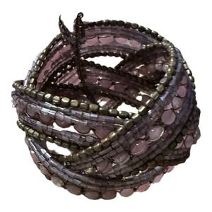 Vintage Purple Wire Beaded Braided Cuff Bracelet Stretch Wrap Bracelet