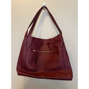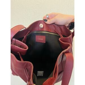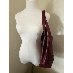 New without Tags. Color is similar to a merlot-burgundy color. Genuine Leather. Measures roughly 14" x 12" x 4.5"