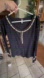 Contrasting embroidered trim, 7-button; scoop neckline, Ribbed-like pattern; textured.