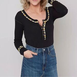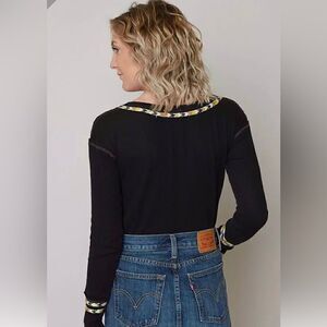 Free People We The Free Womens Embroidered Thermal Henley Shirt Black Size S