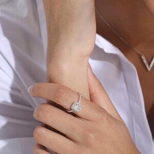 2 Ct Moissanite Women's Ring S925 Sterling Silver Pave Square Diamond