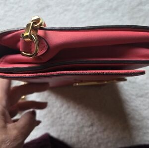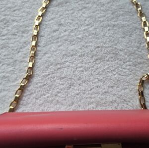 Pink coral clutch, 9"x 6", 15" handle drop gold chain, pre-owned, smoke free home, authenticity code PL4104. Inside handbag is spotless, gold emblem on front, the Big "V" has a dull finish.