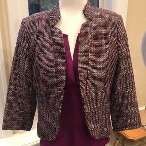 AQUA Black and Pink Tweed Cropped Jacket Lined Open Front EUC Women’s medium