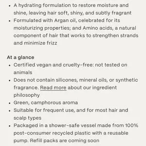 A formulation developed to leave hair soft and smelling faintly of desert night air.