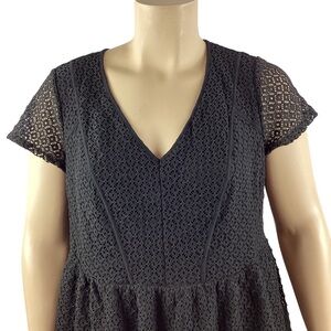 Lane Bryant Top Size 26/28 Black V-Neck Eyelet
