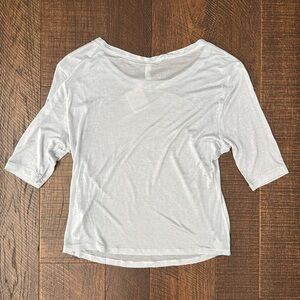 So timeless and made for layering, this soft top is featured in a sheer fabrication and featherweight feel with 3/4 sleeves.