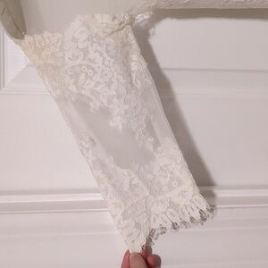 Wedding Dress Sheer Lace Ivory David's Bridal Galina Size 6 - Tulle 3/4 Sleeves