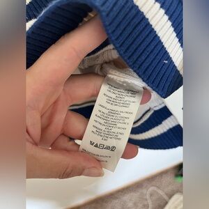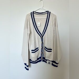 Classic, vintage-inspired style is yours with this cable-knit cardi from We The Free, featuring varsity-striped trims for a sporty touch.