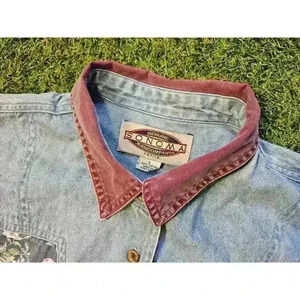 Vintage Sonoma Jeans Co Floral Denim Shirt Sz Large Petites Western Cowgirl Y2K