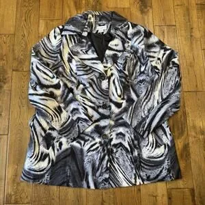 Susan Graver Animal Print Trench Coat Black and White Belt Included Size XL