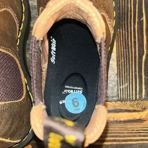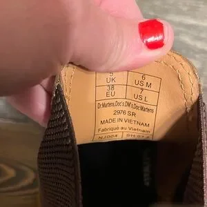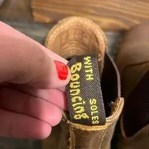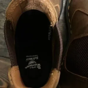 PRICE IS FIRM. NO OFFERS Classic Dr. Martens Chelsea style boots in dark brown leather. Sturdy and stylish with signature yellow stitching. Pull on design is great for everyday use. These were too big for me. They still have the size 6 (mens) size 7 (womens) sticker on the inside. Smoke free home. Don’t have the box anymore.