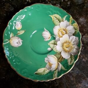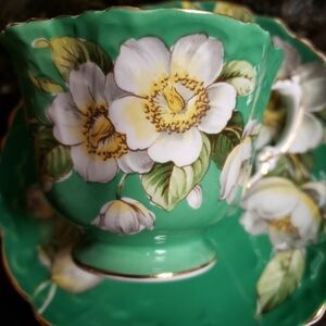 Aynsley Tea Cup Saucer Set Kelly Green White Flowers Apple Blossom England