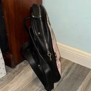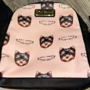 Betsey Johnson Vintage Pink and Black Yorkie Pattern Backpack