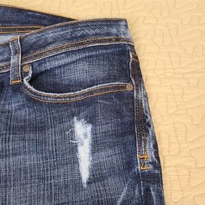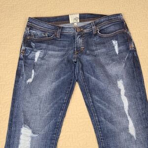 Dylan George Lucy distressed slim fit jeans. Medium Blue wash with distressed front, 3 front pockets, button zip fly, belt loops, 2 back pockets and zippered ankle hem. Size 30 brand new with tags.
